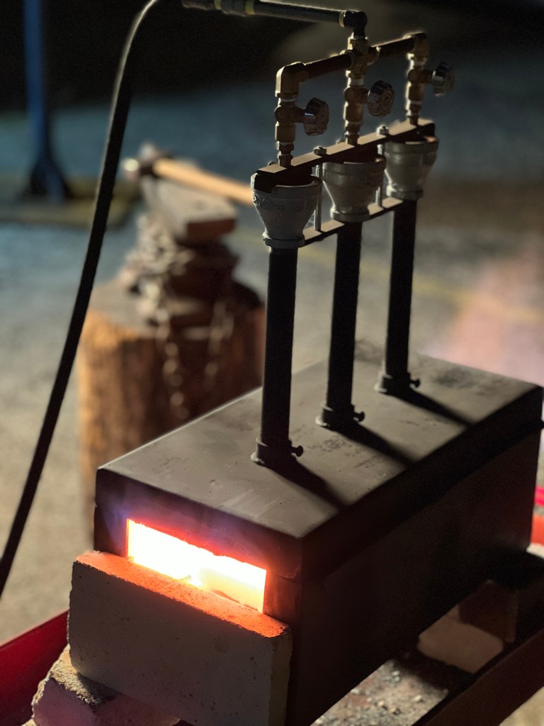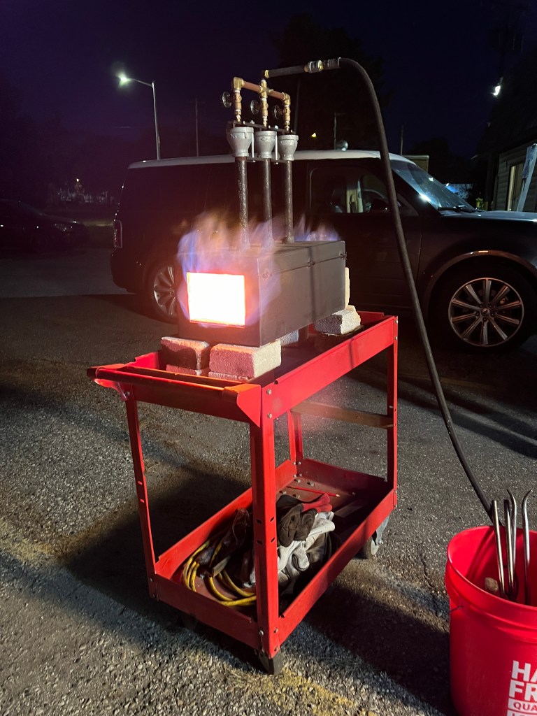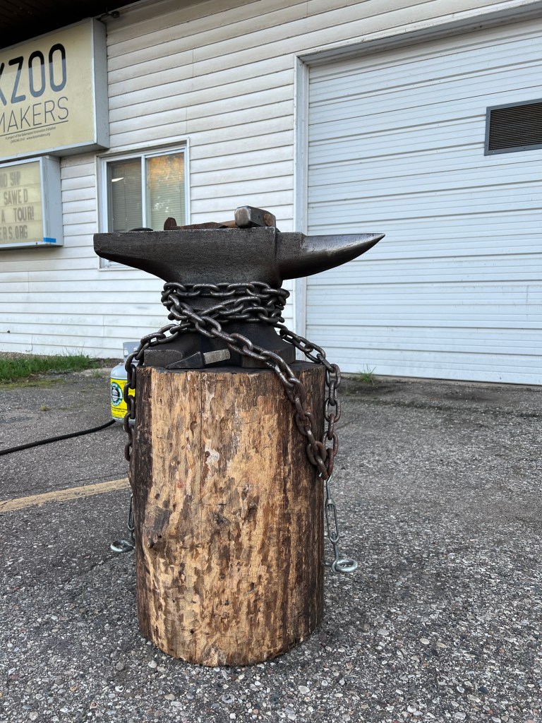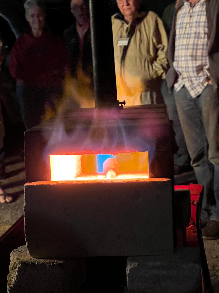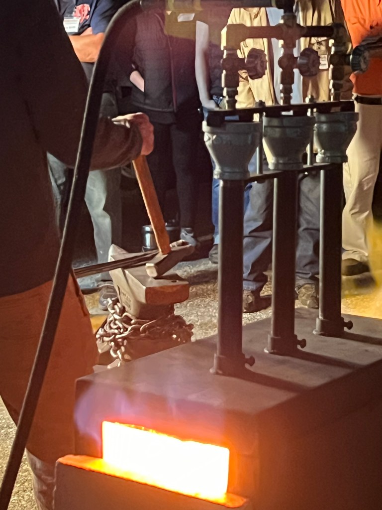 Cole, the owner of Butterhog Forge in Kalamazoo gave an excellent demonstration at our October meeting. He brought his portable forge and made a knife from a railroad tie, allowing some of our members to take a shot at it as well!